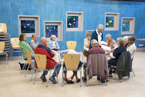 Eine Kleingruppe hat am 4. Amos-Abend das Gedicht "Advent" von Lisianne Enderli betrachtet. Dort ist davon die Rede, dass jede von uns Prophetin ist, ausgespannt zwischen Himmel und Erde, in den Händen Licht und Wahrheit haltend.