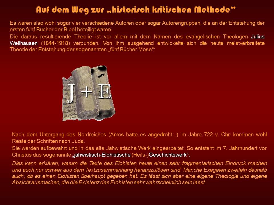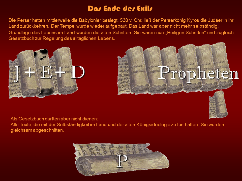 - wie das zu verstehen ist, dass die fünf Bücher Mose kaum von Mose selbst geschrieben wurden.